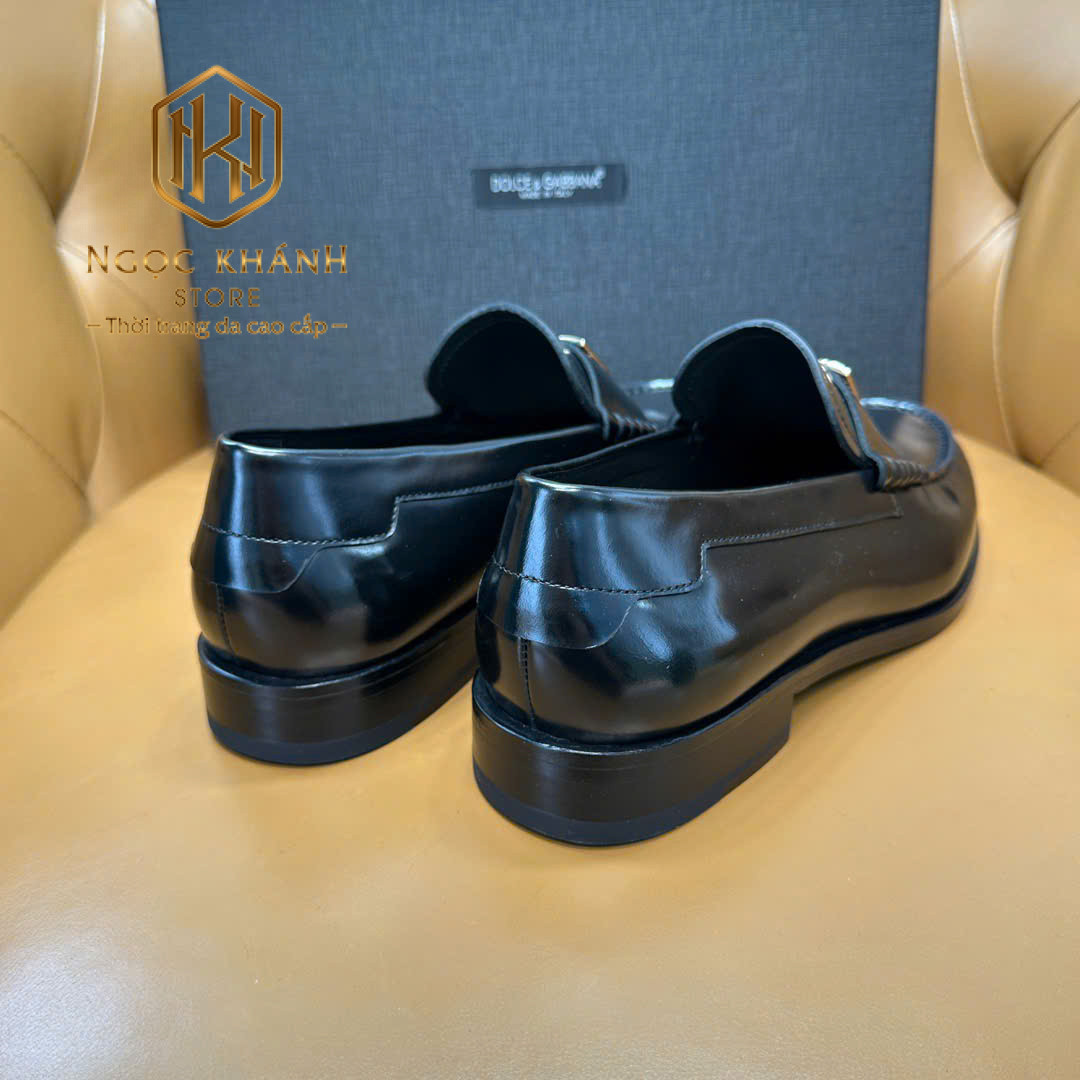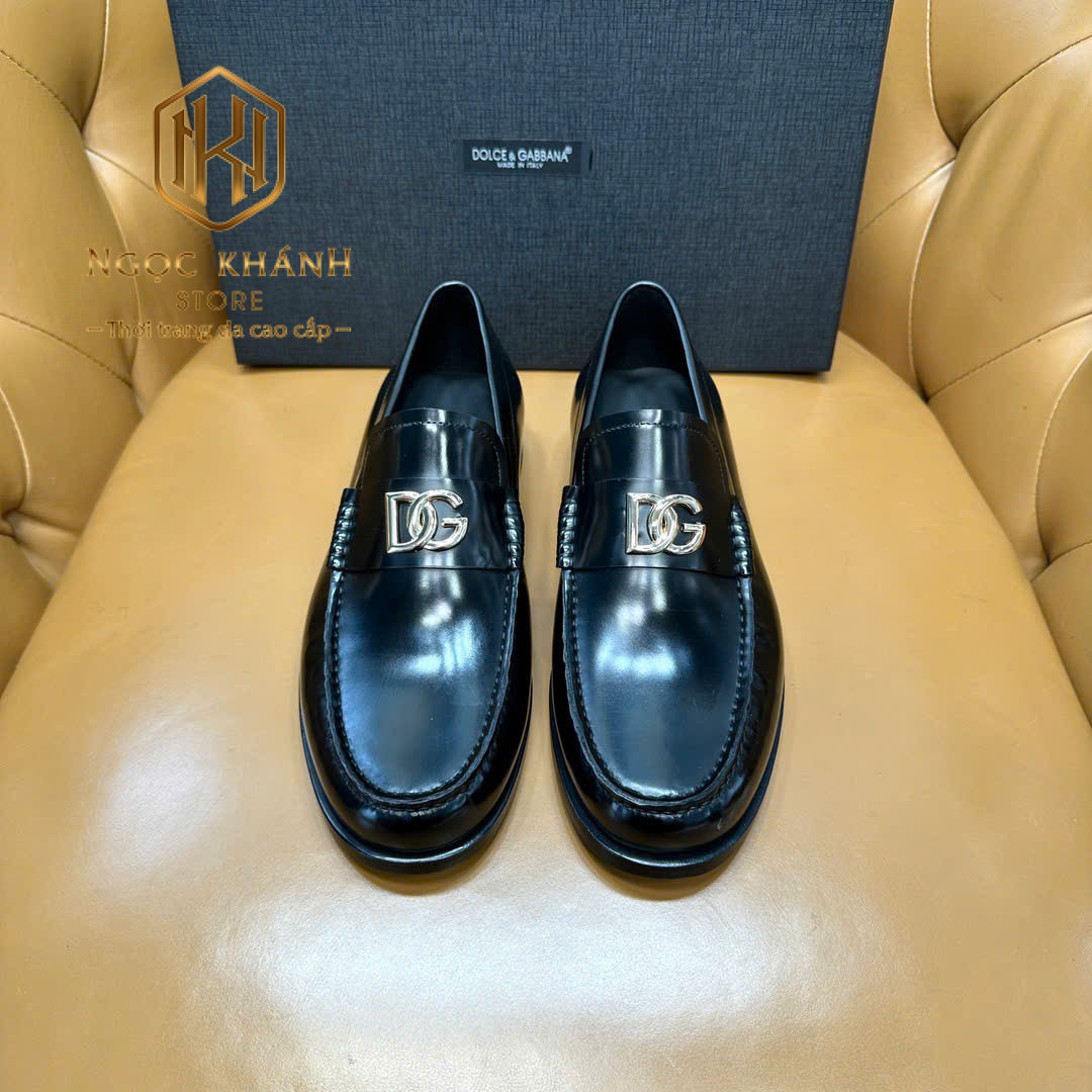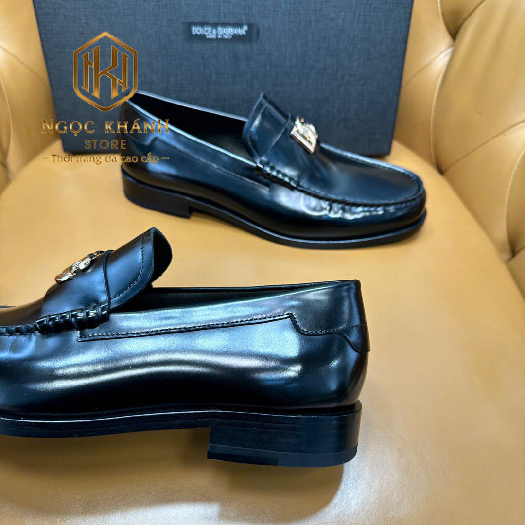 GIÀY LƯỜI DOLCE GABBANA NAM MÀU ĐEN ĐẾ CAO DA BÓNG HỌA TIẾT LOGO TRẮNG GLDG07