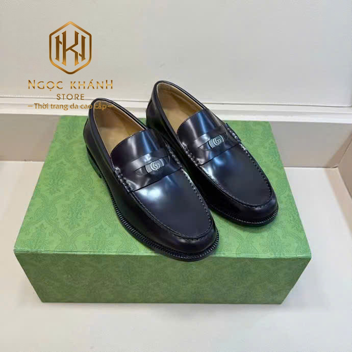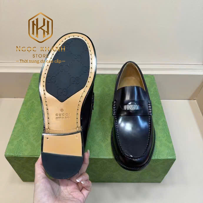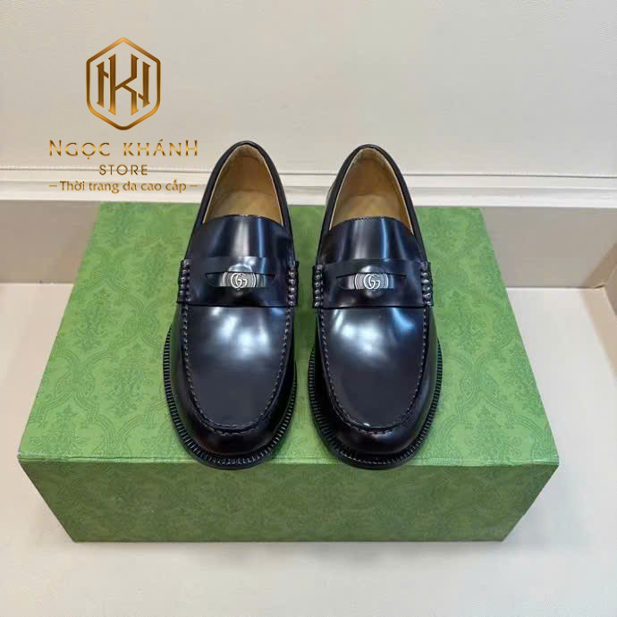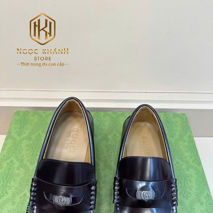 GIÀY LƯỜI GUCCI NAM ĐẾ CAO MÀU ĐEN DA TRƠN TAG ẨN LOGO TRÒN GLGC70