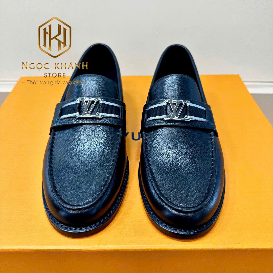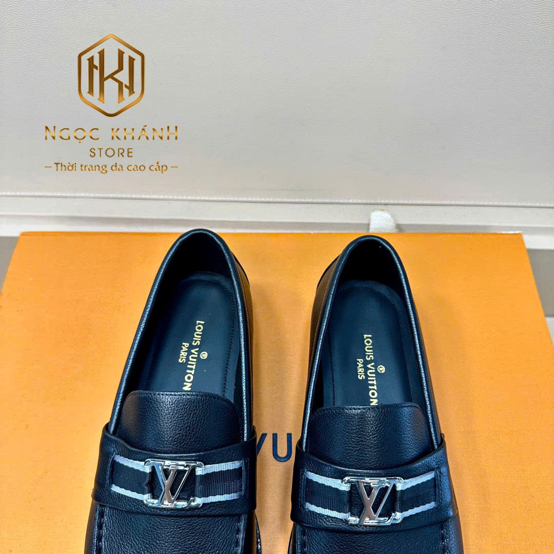 GIÀY LƯỜI LOUIS VUITTON LIKE AUTH ĐẾ CAO DA NHĂN TAG XÁM LOGO NHỎ TRẮNG GLLV122