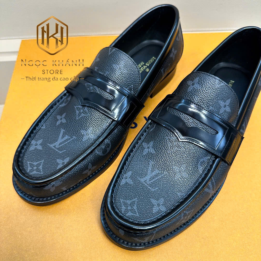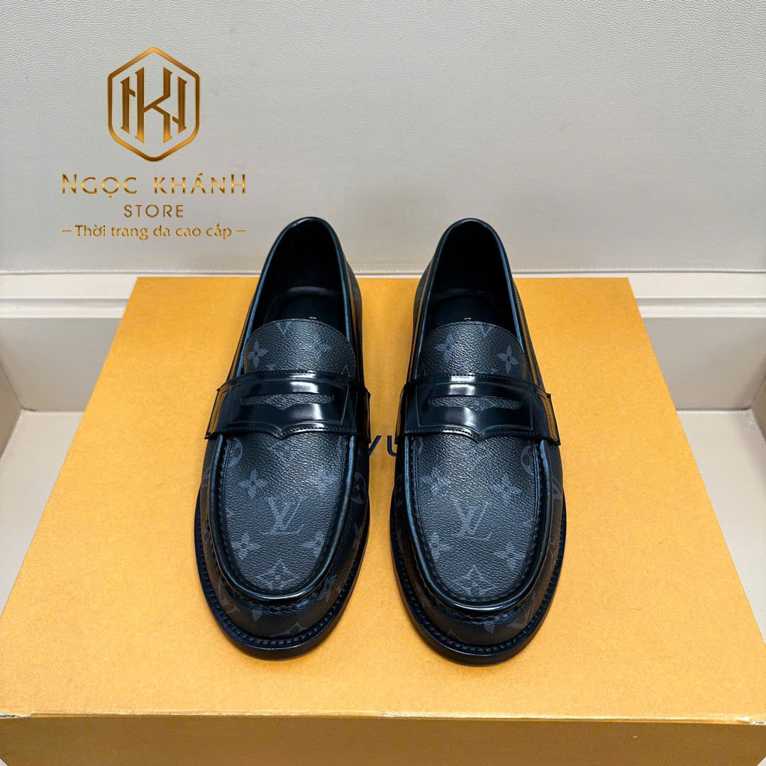 GIÀY LƯỜI LOUIS VUITTON LIKE AUTH ĐẾ CAO HỌA TIẾT HOA ĐEN TAG ẨN GLLV111
