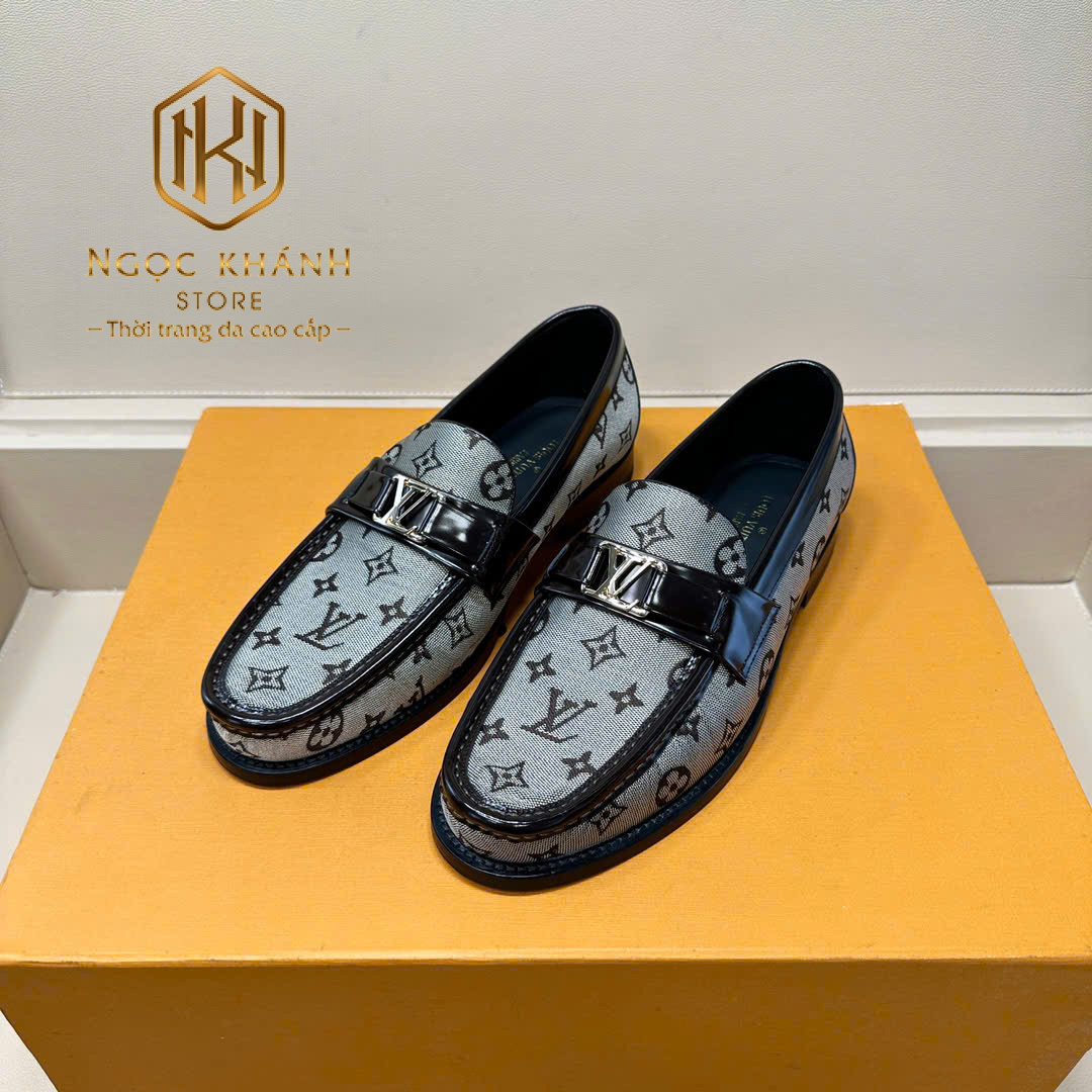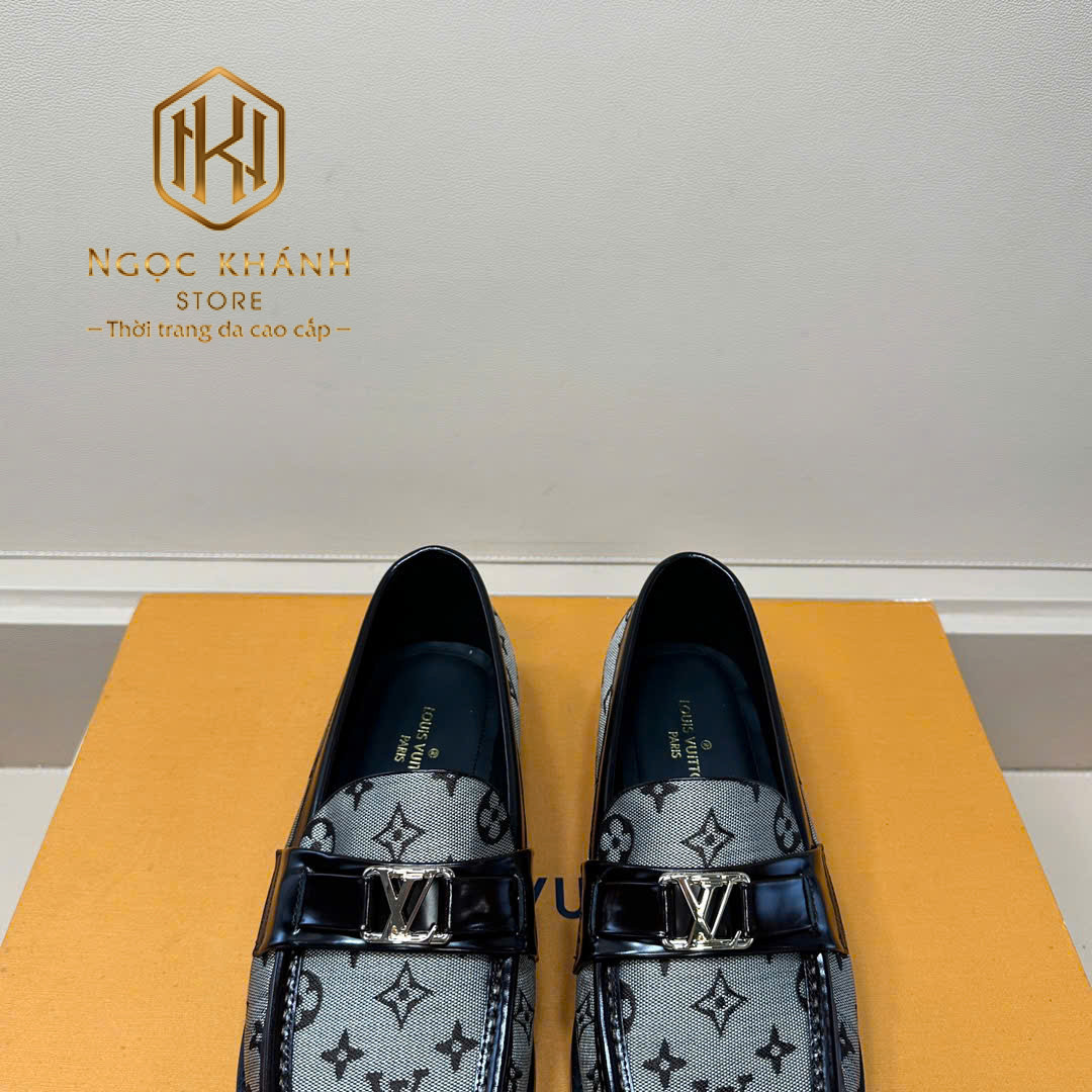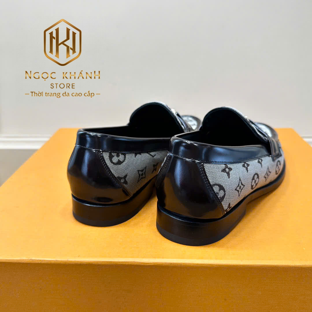 GIÀY LƯỜI LOUIS VUITTON LIKE AUTH ĐẾ CAO HOA XÁM HỌA TIẾT LOGO NHỎ TRẮNG GLLV115