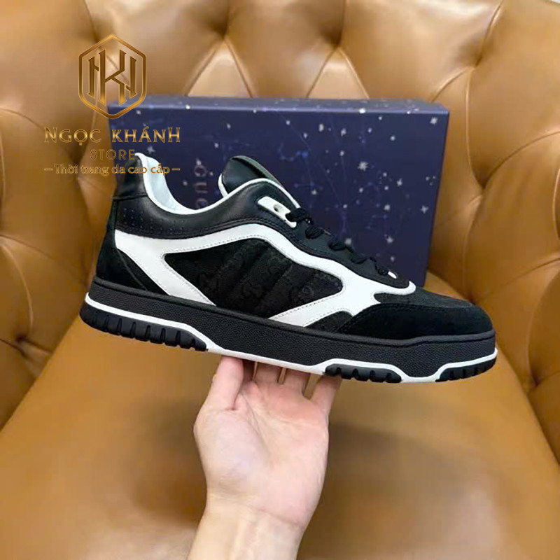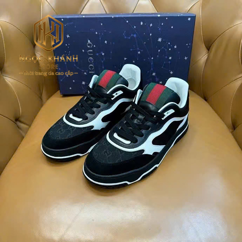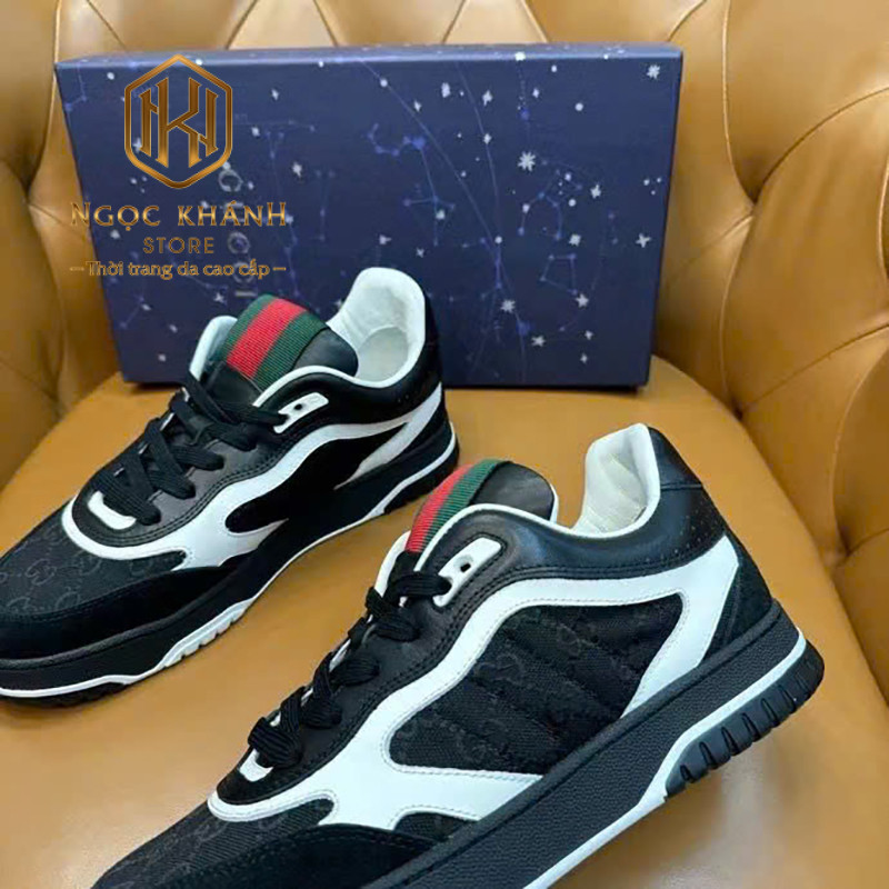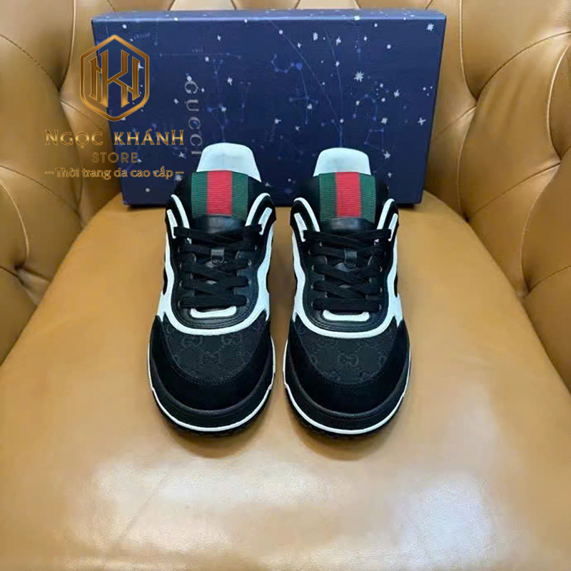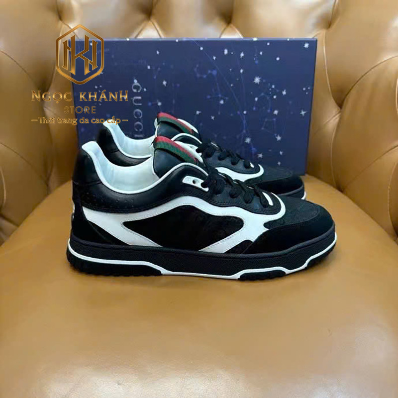 GIÀY NAM GUCCI MÀU ĐEN PHỐI TRẮNG HỌA TIẾT TAG XANH ĐỎ GNGC42