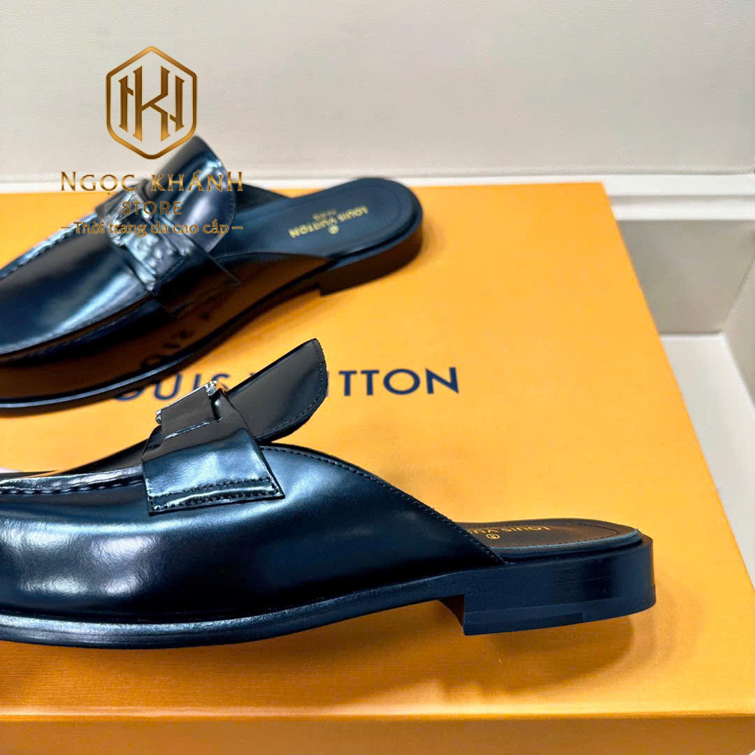 SỤC NAM LOUIS VUITTON MÀU ĐEN DA BÓNG HỌA TIẾT LOGO NHỎ TRẮNG GLLV118