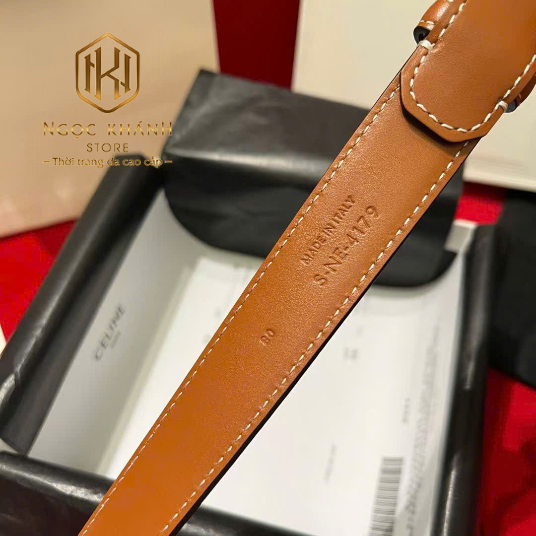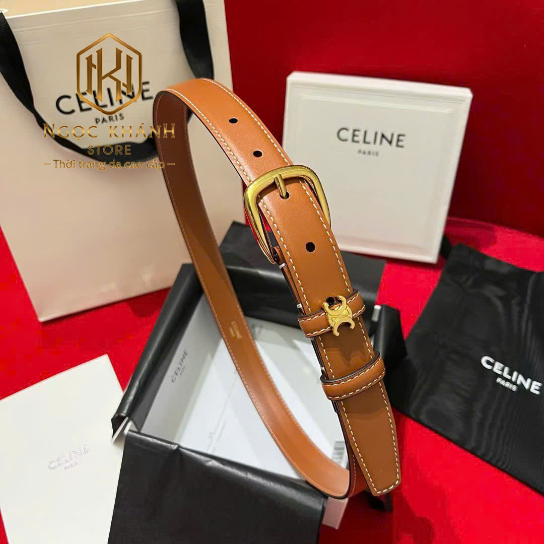 THẮT LƯNG NỮ CELINE DÂY NÂU KHÓA KIM VÀNG LOGO NHỎ TLNCL03