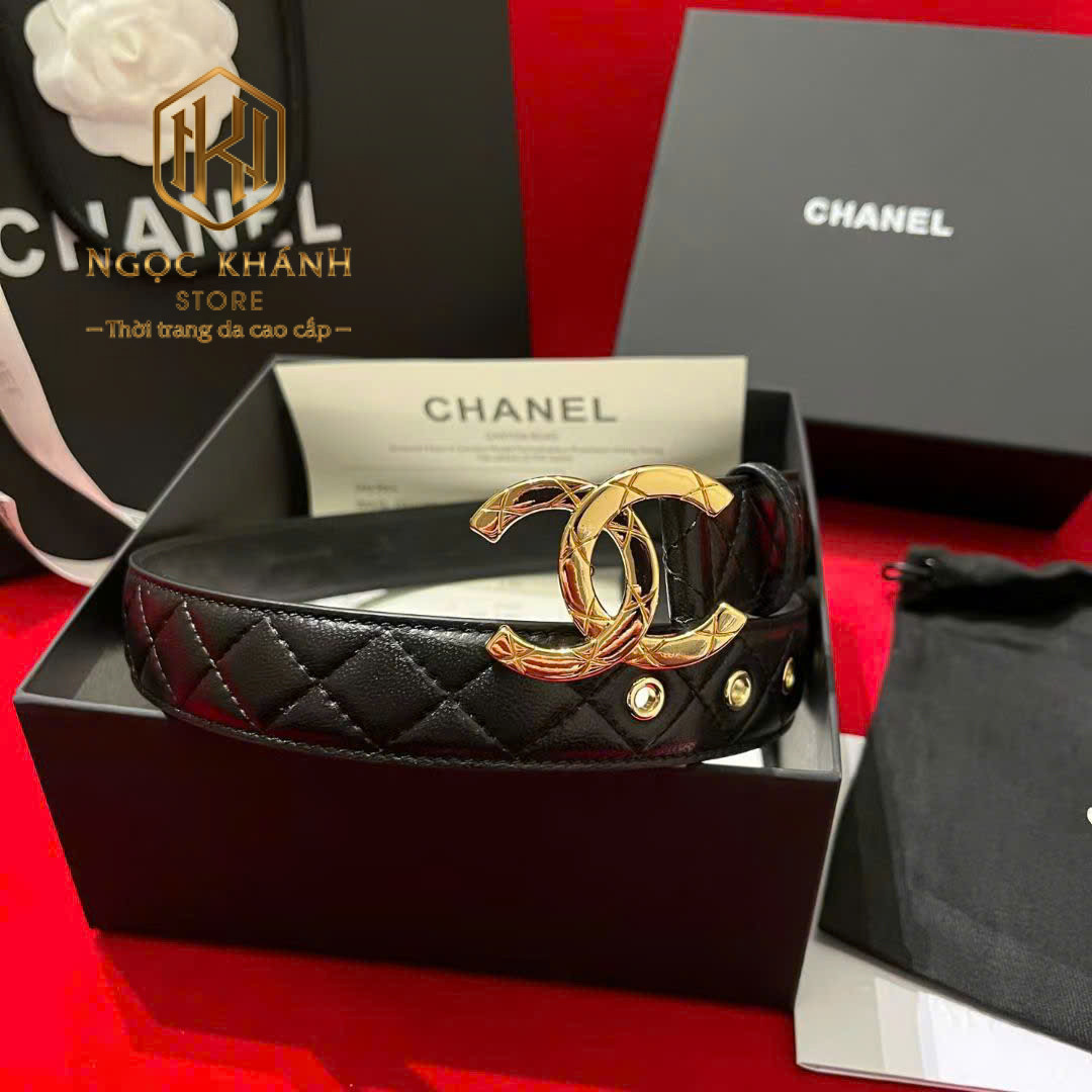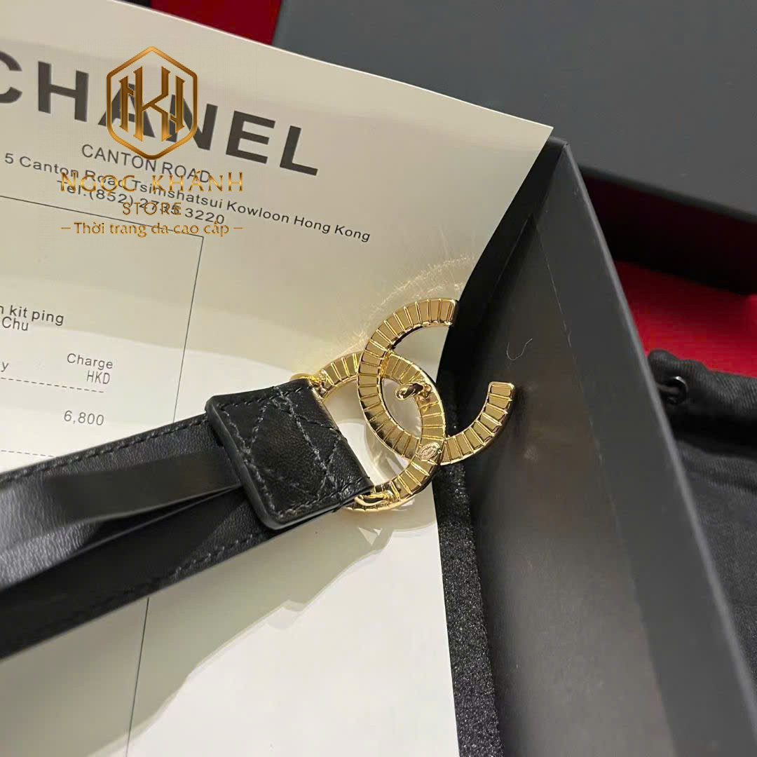 THẮT LƯNG NỮ CHANEL DÂY ĐEN DẬP HỌA TIẾT LOGO VÀNG TLNCN01