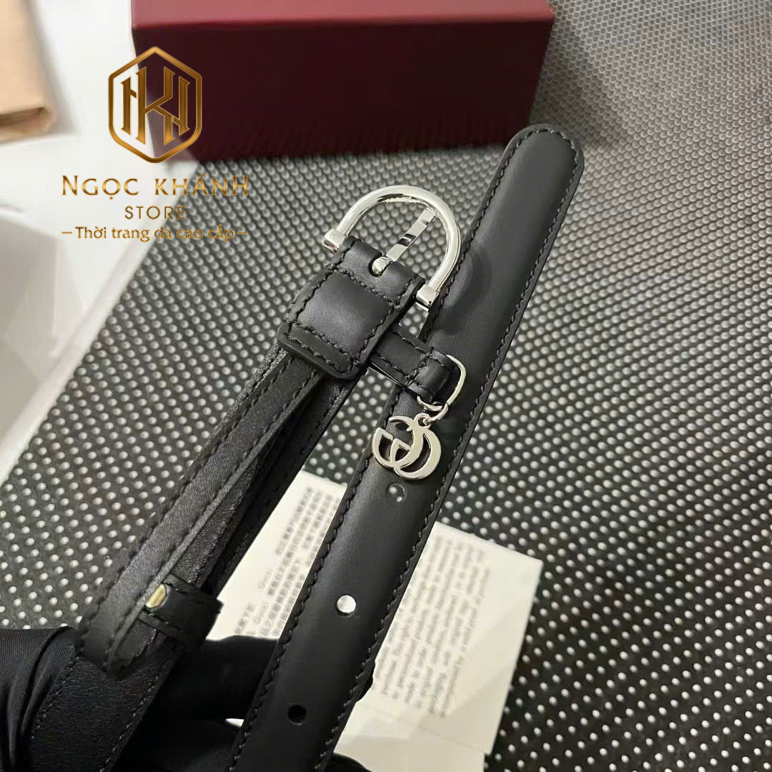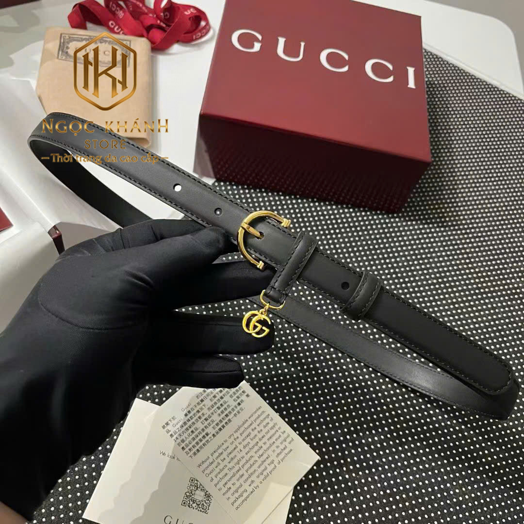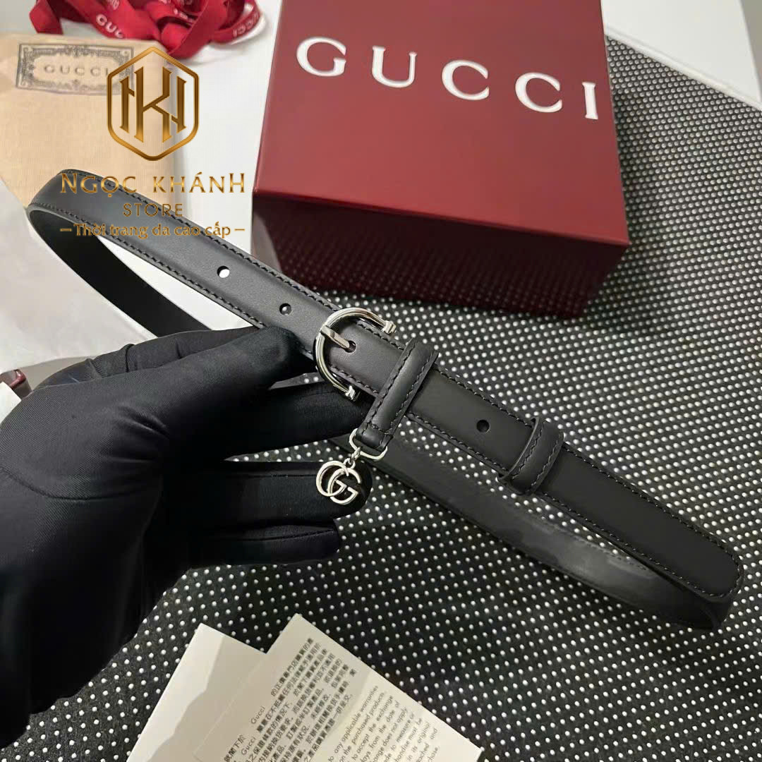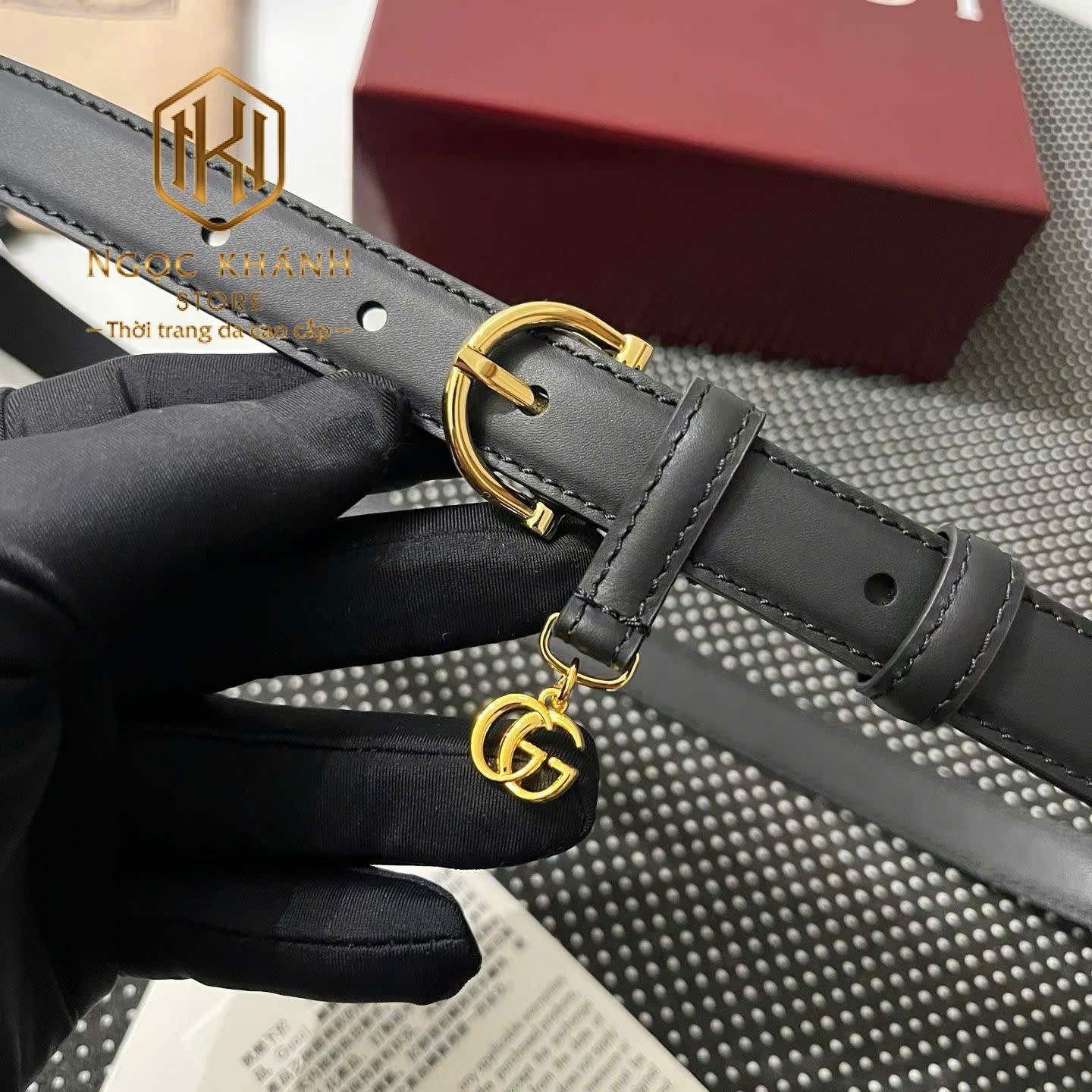 THẮT LƯNG NỮ GUCCI DA TRƠN MÀU ĐEN KHÓA KIM LOGO TREO TLNGC03