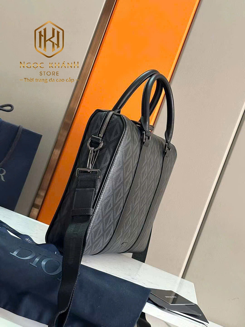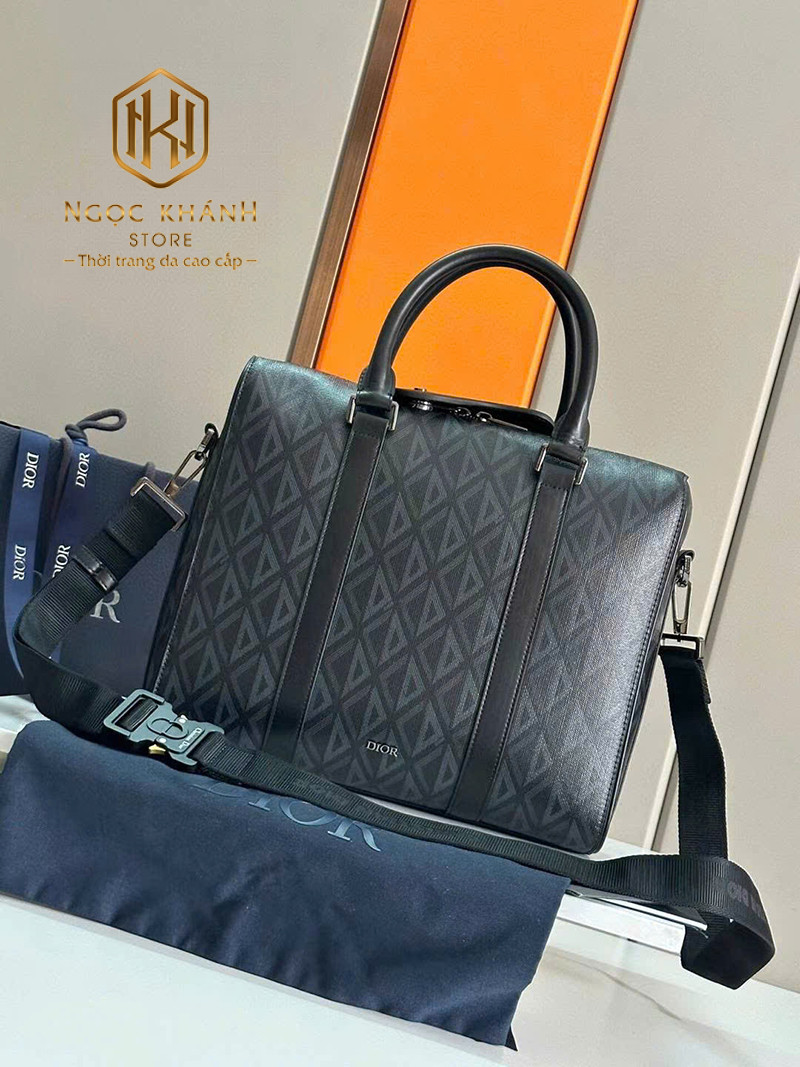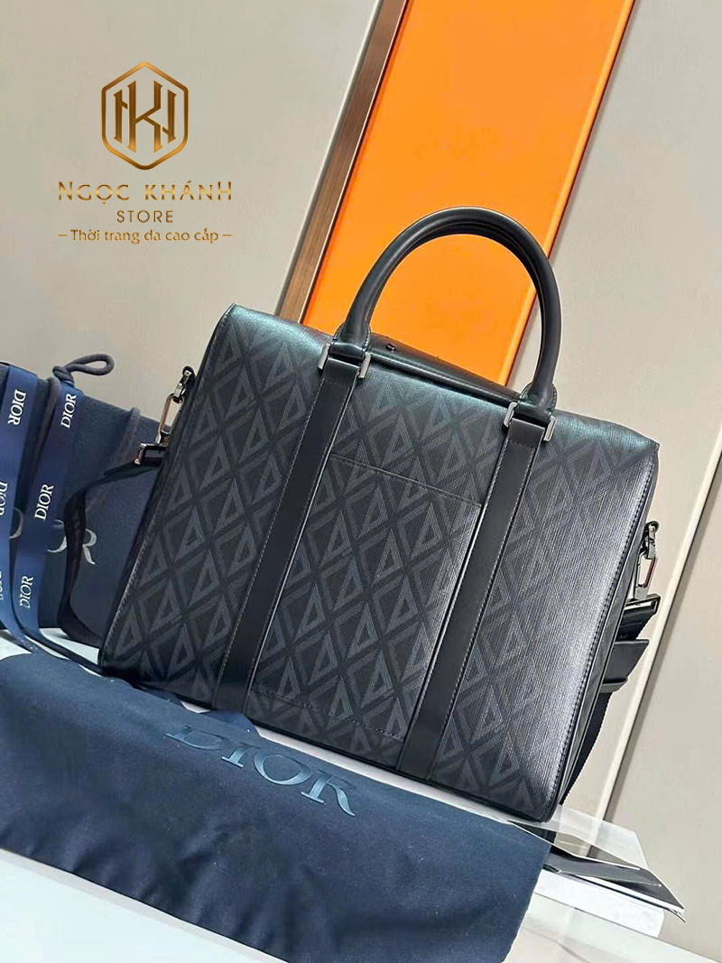 TÚI XÁCH NAM DIOOR MÀU ĐEN HỌA TIẾT TAM GIÁC TAY XÁCH TXDR09