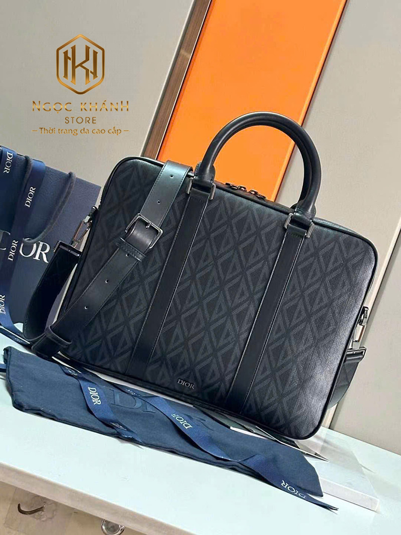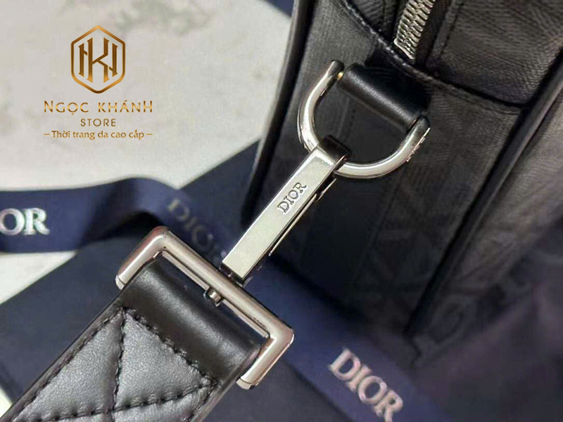 TÚI XÁCH NAM DIOR MÀU ĐEN KHÓA TRẮNG TAY XÁCH TXDR06