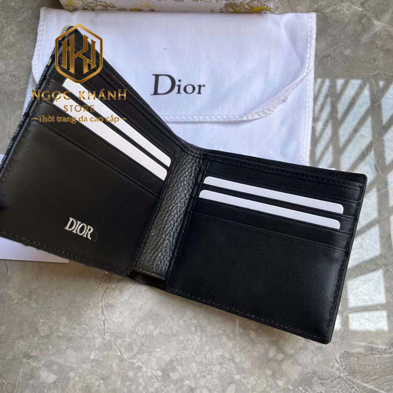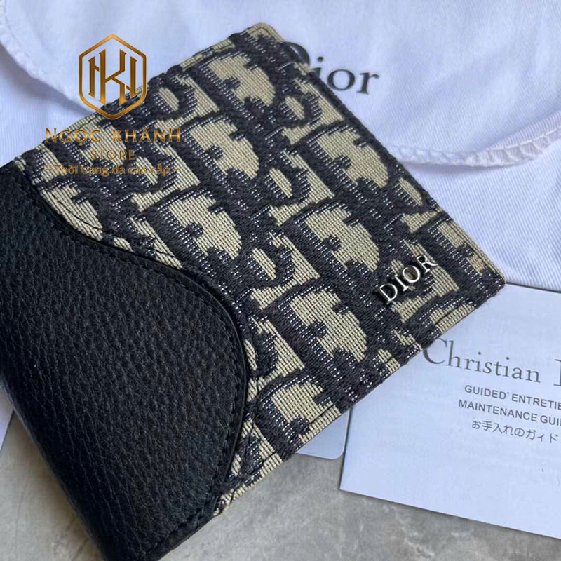 VÍ NAM DIOR BỎ TÚI HỌA TIẾT LOGO CHỮ ĐEN DÁNG GẬP VNDR13